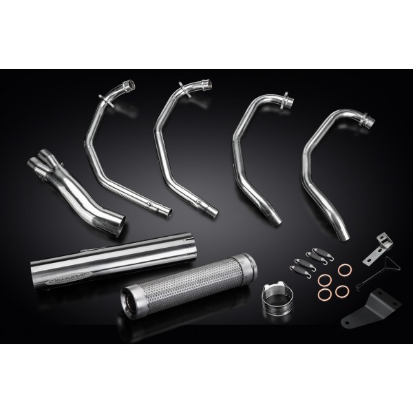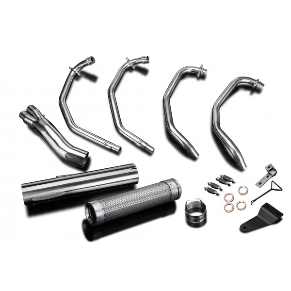 • This set includes - Stainless Delkevic downpipes, classic style stainless straight silencer, and bracket..