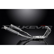- This set includes - Delkevic down pipes, collector box, link pipes, silencers with removable baffles, straps, clamps, and gaskets.