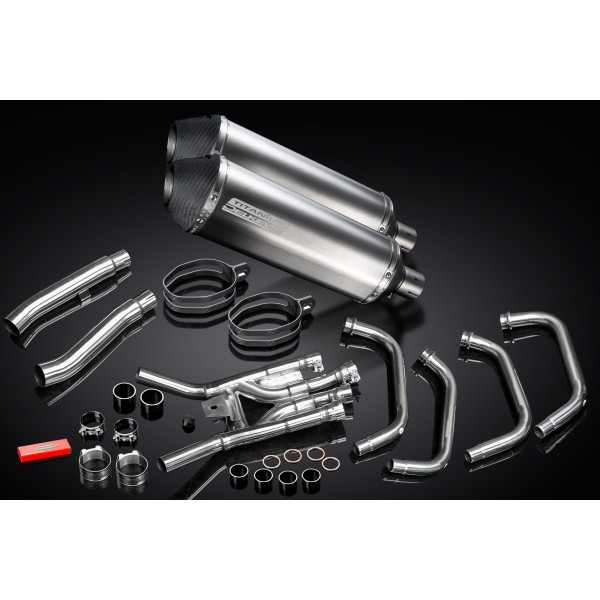 • This set includes - Delkevic down pipes, collector box, link pipes, silencers with removable baffles, straps, clamps, and gaskets.