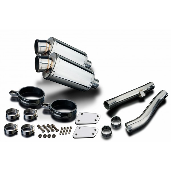 - This set includes - Delkevic silencers with removable baffles, link pipes, straps, and clamps.