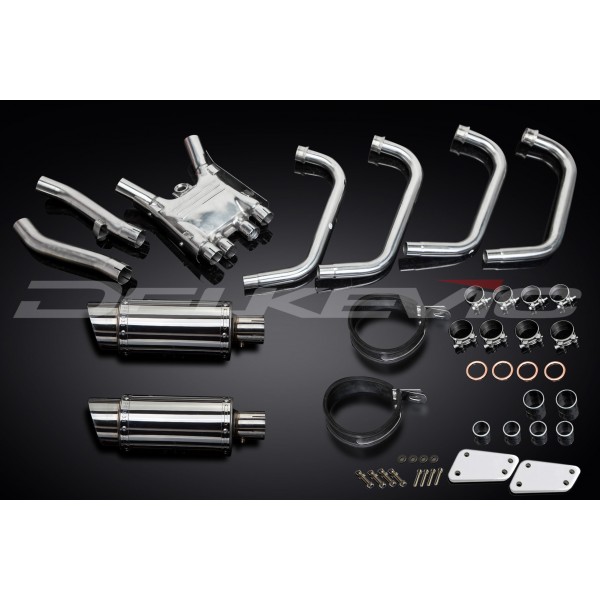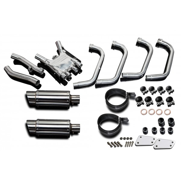 • This set includes - Delkevic down pipes, collector box, link pipes, silencers with removable baffles, straps, clamps, gaskets, washers, cap screws, nyloc nuts, and brackets.