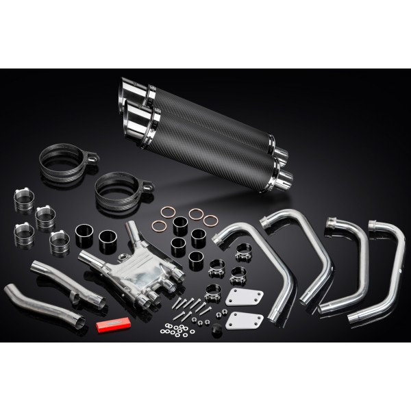 • This set includes - Delkevic down pipes, collector box, link pipes, silencers with removable baffles, straps, clamps, gaskets, washers, cap screws, nyloc nuts, and brackets.