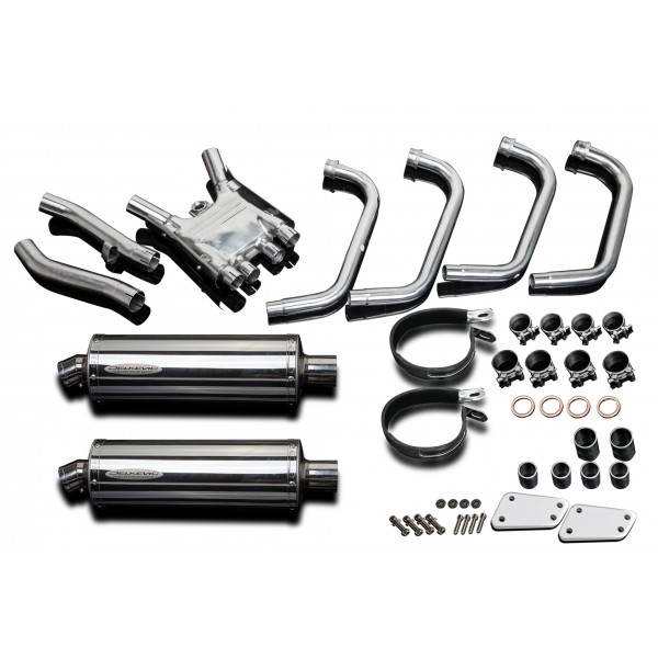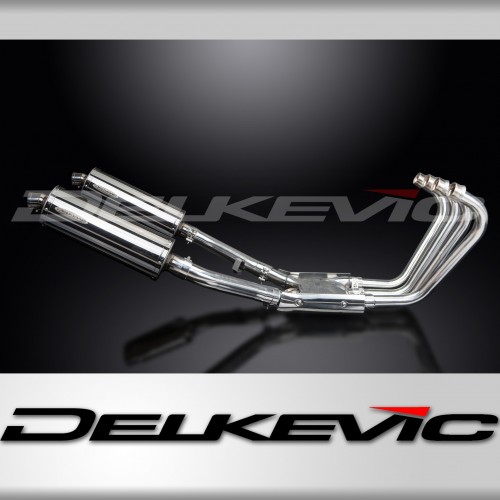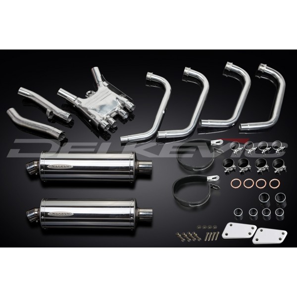 • This set includes - Delkevic down pipes, collector box, link pipes, silencers with removable baffles, straps, clamps, gaskets, washers, cap screws, nyloc nuts, and brackets.