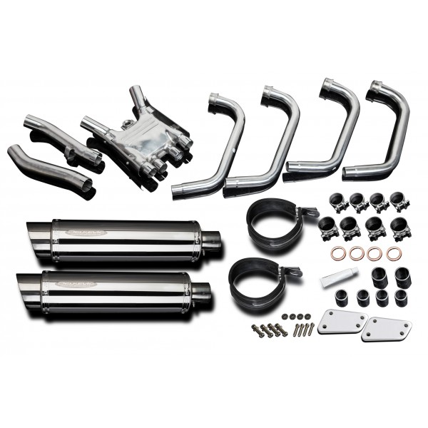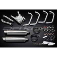• This set includes - Delkevic down pipes, collector box, link pipes, silencers with removable baffles, straps, clamps, gaskets, washers, cap screws, nyloc nuts, and brackets.