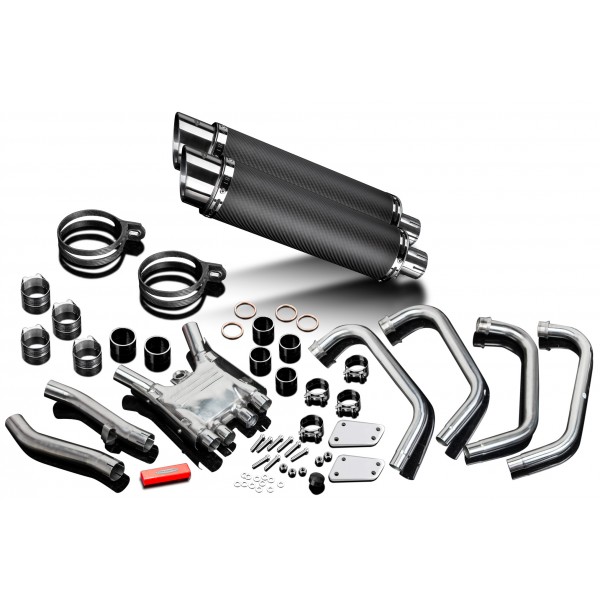 • This set includes - Delkevic down pipes, collector box, link pipes, silencers with removable baffles, straps, clamps, gaskets, washers, cap screws, nyloc nuts, and brackets.
