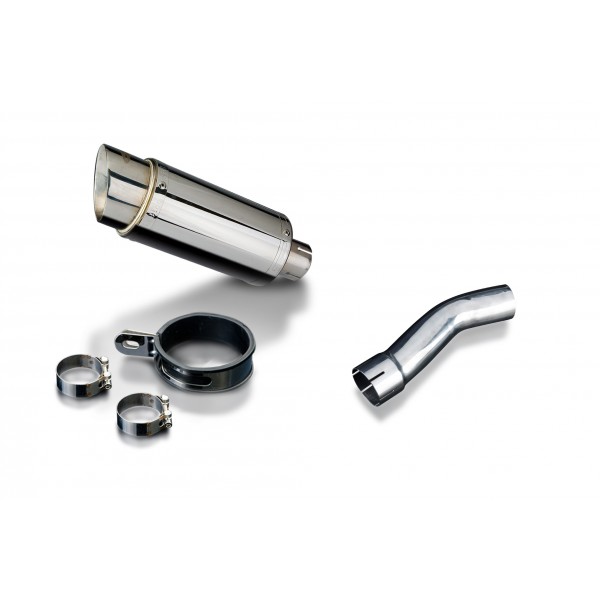• This set includes - Delkevic silencer with a removable baffle, link pipe, strap, and clamps.