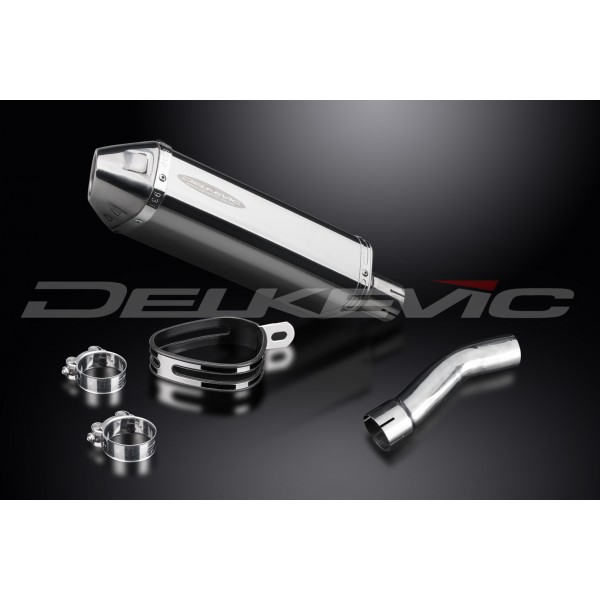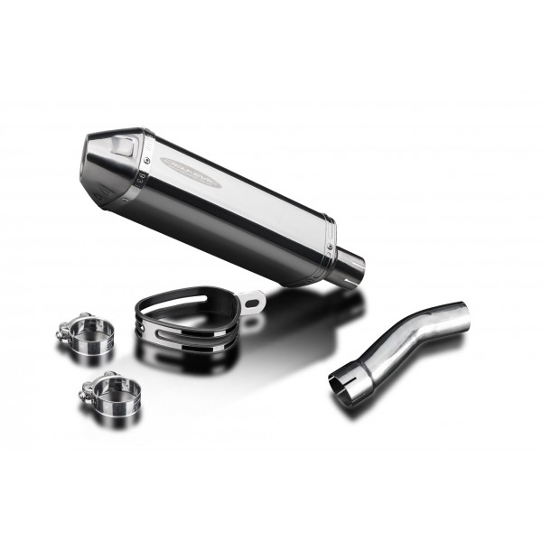 • This set includes - Delkevic silencer with a removable baffle, link pipe, strap, and clamps.