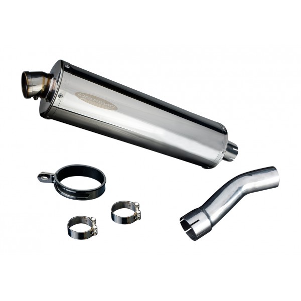 • This set includes - Delkevic silencer with a removable baffle, link pipe, strap, and clamps.