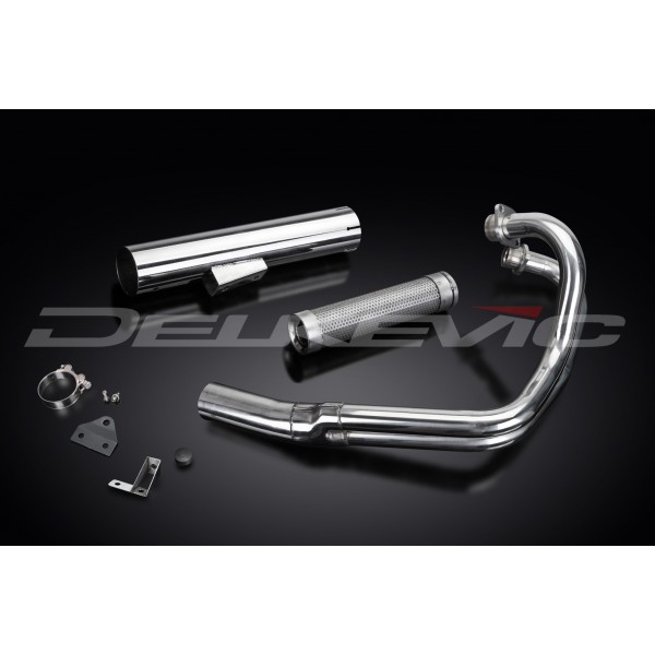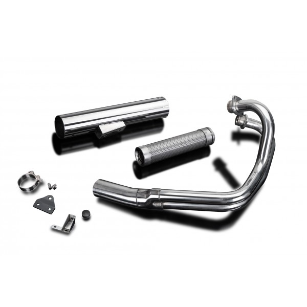• This set includes - Delkevic down pipes, Classic style silencer with a removable baffle, clamp, brackets, stand stop rubber, nyloc nuts, washers, and cap screws.