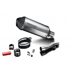 • This set includes - Delkevic silencer with a removable baffle, link pipe, silencer strap, cap screw, washers, nyloc nut, bracket, and clamps.