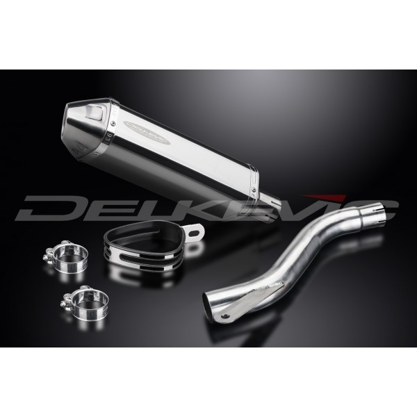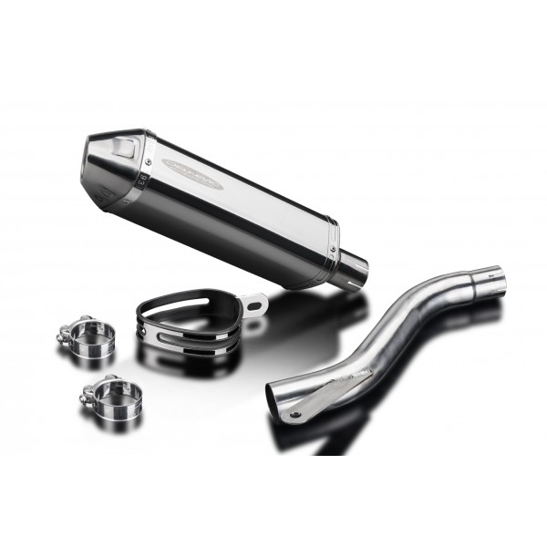 • This set includes - Delkevic silencer with a removable baffle, link pipe, strap, clamps, and fixings.