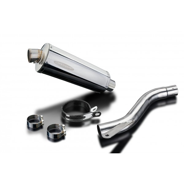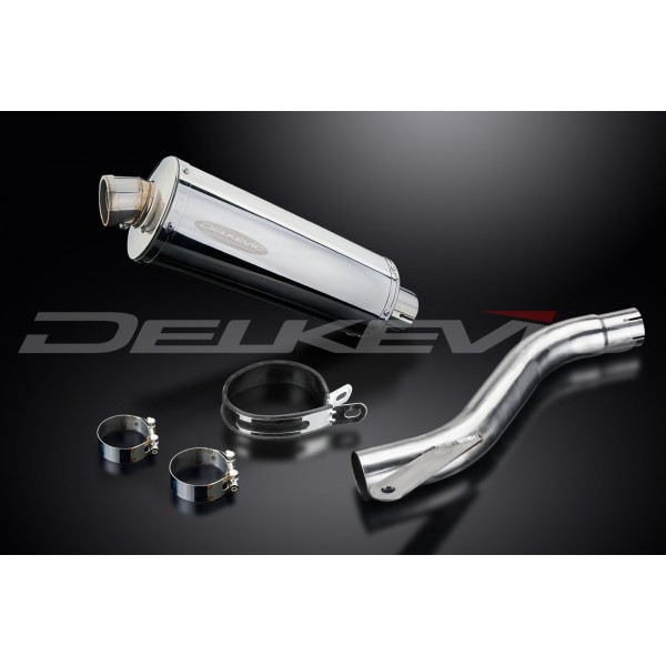 • This set includes - Delkevic silencer with a removable baffle, link pipe, strap, clamps, and fixings.
