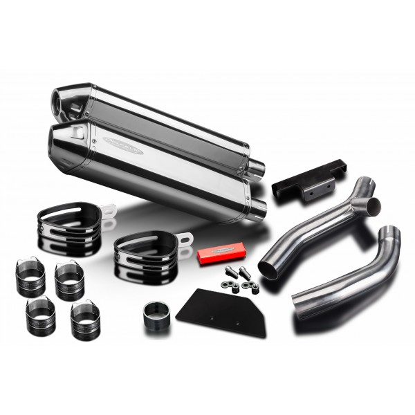 - This set includes - Delkevic silencers with removable baffles, link pipes, straps, brackets, clamps, and fixings.