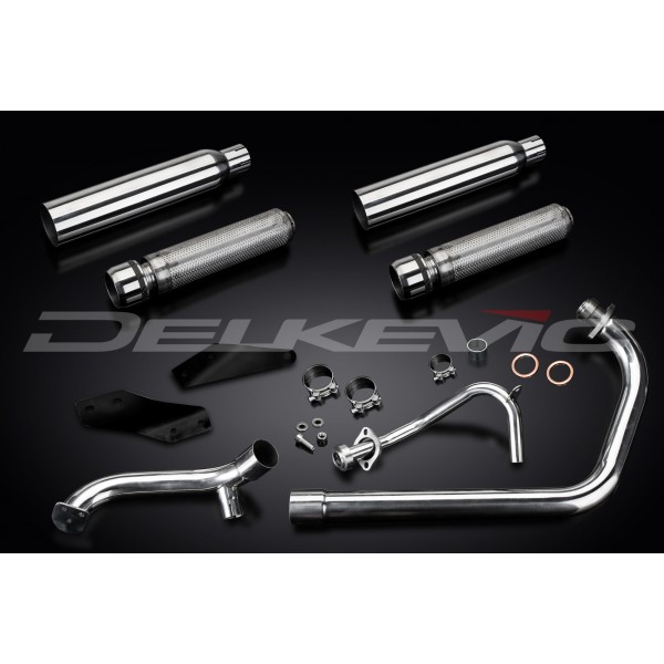 • This set includes - Delkevic down pipes, silencers with removable baffles, brackets, clamps, and fixings.