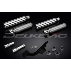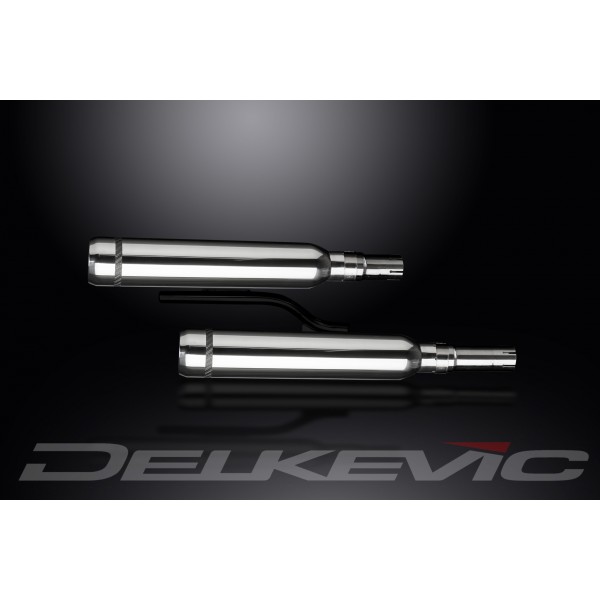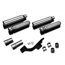 • This set includes - Delkevic silencers with removable baffles, link pipes, bracket, washers, cap screws, gaskets, and clamps.