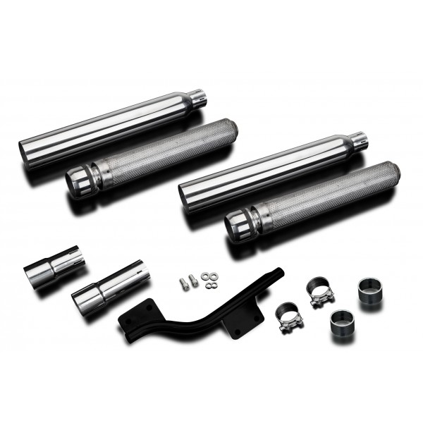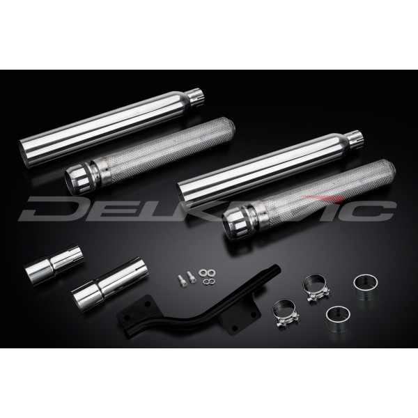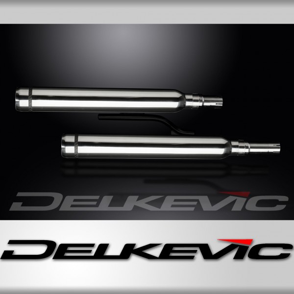 • This set includes - Delkevic silencers with removable baffles, link pipes, bracket, washers, cap screws, gaskets, and clamps.