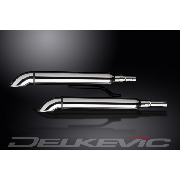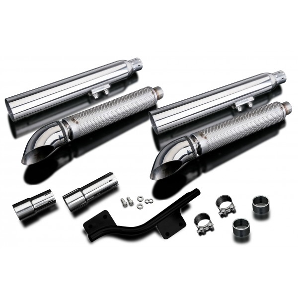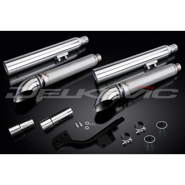 • This set includes - Delkevic silencers with removable baffles, link pipes, bracket, washers, cap screws, gaskets, and clamps.