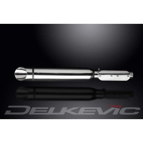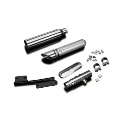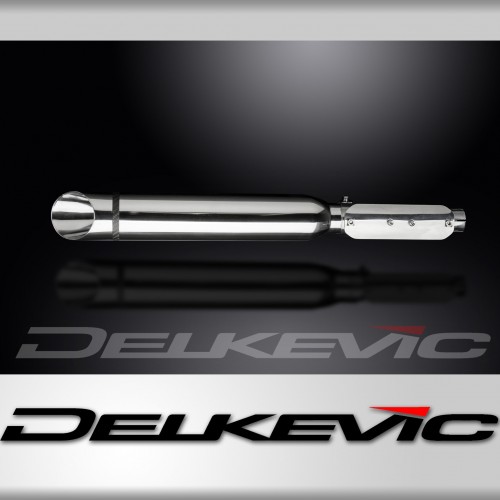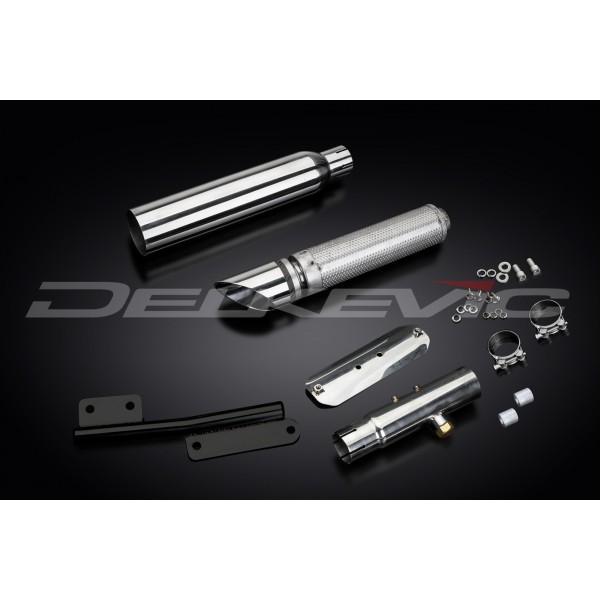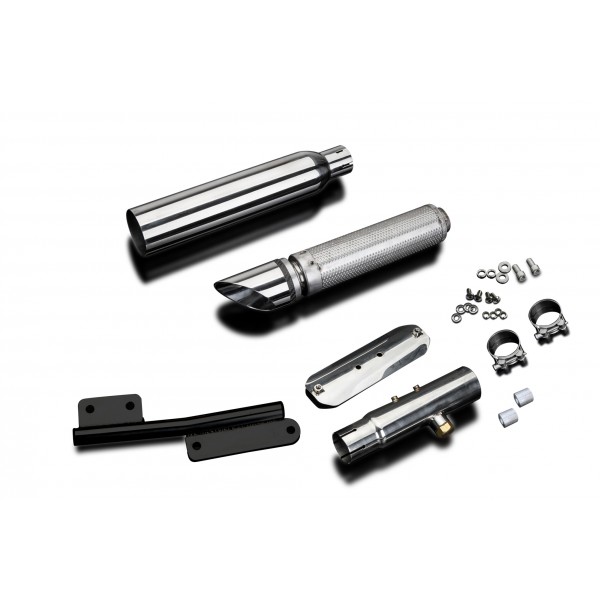 • This set includes - Delkevic silencer with a removable baffle, link pipe, clamps, screws, washers, spacers, and bracket.