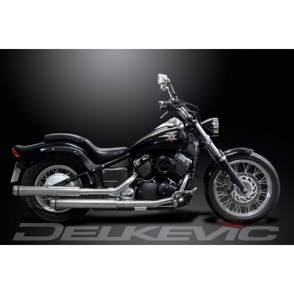 YAMAHA XVS650A DRAGSTAR 04-16 FULL 2-2 EXHAUST 550mm CUSTOM SILENCER BULL NOSE