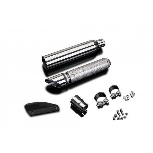 • This set includes - Delkevic silencer with a removable baffle, link pipe, clamps, bracket, and fixings.