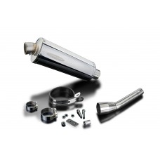 - This set includes - Delkevic silencer with removeable baffle, link pipe, silencer strap, washers, cap screws, bracket, nyloc nut, spacer, and clamps.
