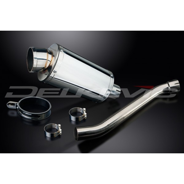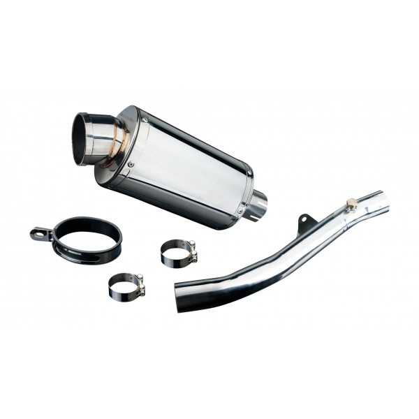 • This set includes - Delkevic silencer with a removable baffle, link pipe, strap, and clamps.