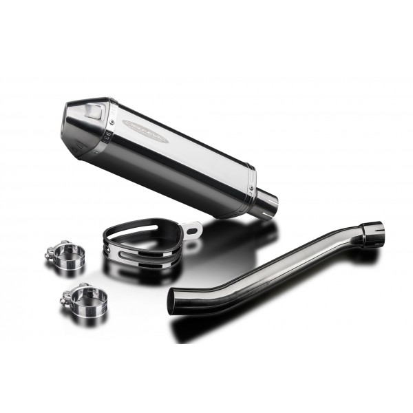 - This set includes - Delkevic silencer with a removable baffle, link pipe, strap, and clamps.