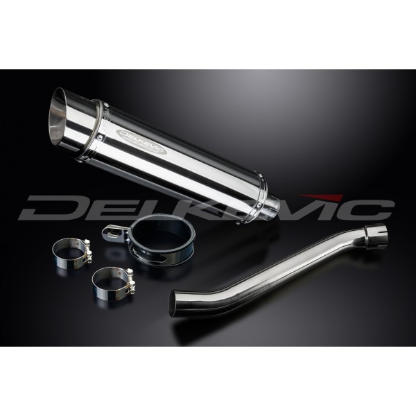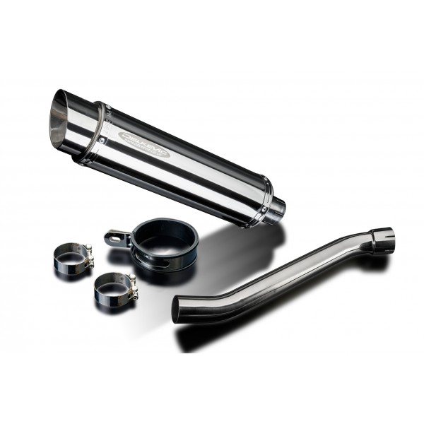• This set includes - Delkevic silencer with a removable baffle, link pipe, strap, and clamps.
