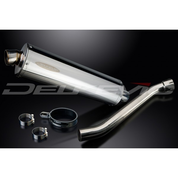 • This set includes - Delkevic silencer with a removable baffle, link pipe, strap, and clamps.