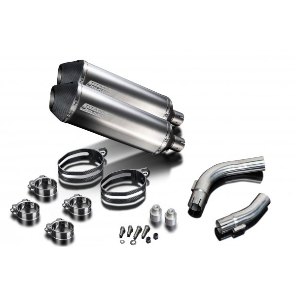 • This set includes - Delkevic silencers with removable baffles, link pipes, straps, clamps, and brackets.