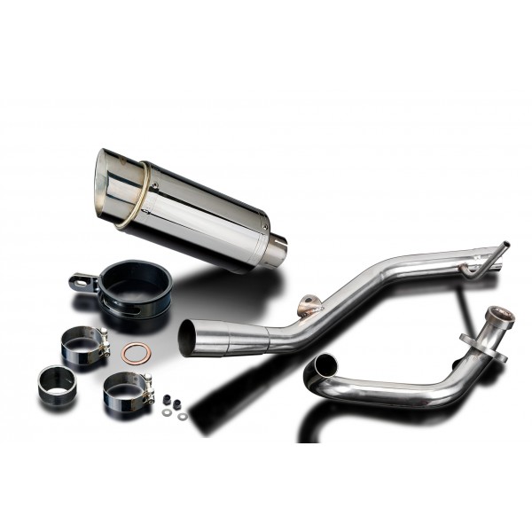 - This set includes - Delkevic down pipe, de-cat link pipe, silencer with removable baffle, strap, clamps, gaskets, nyloc nuts, and washers.