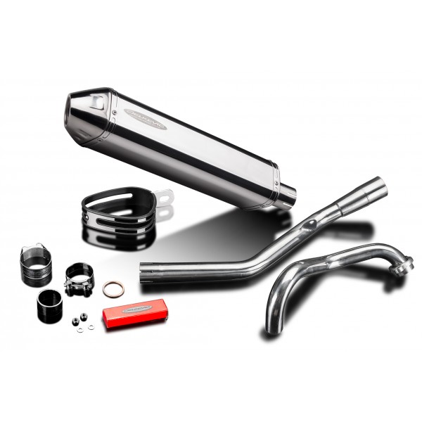 • This set includes - Delkevic down pipes, collector link pipe, silencer with a removable baffle, strap, clamps, gaskets, and fixings.