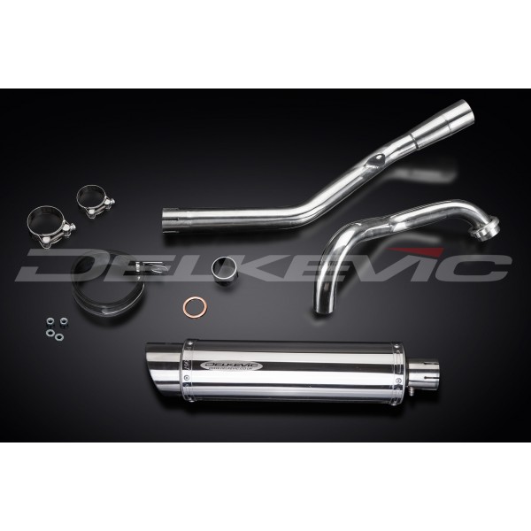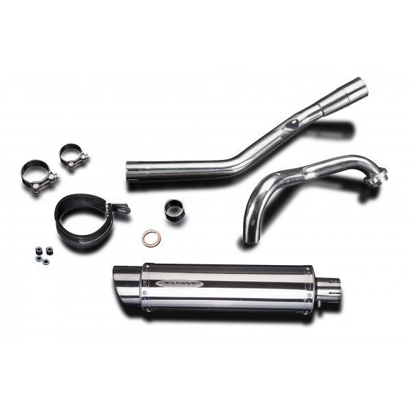 • This set includes - Delkevic down pipes, collector link pipe, silencer with a removable baffle, strap, clamps, gaskets, and fixings.