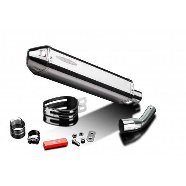 • This set includes - Delkevic silencer with a removable baffle, silencer strap, washers, nyloc nut, cap screw, bracket, and clamps.