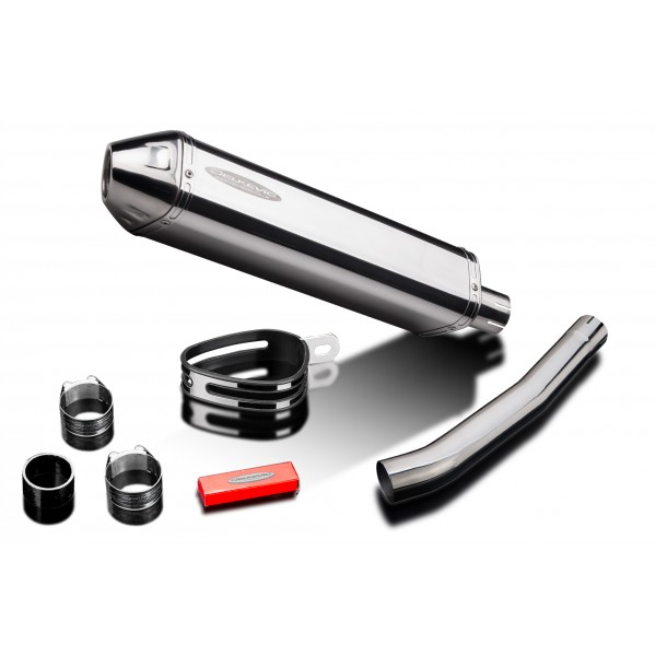 - This set includes - Delkevic silencer with a removable baffle, link pipe, clamps, and strap.