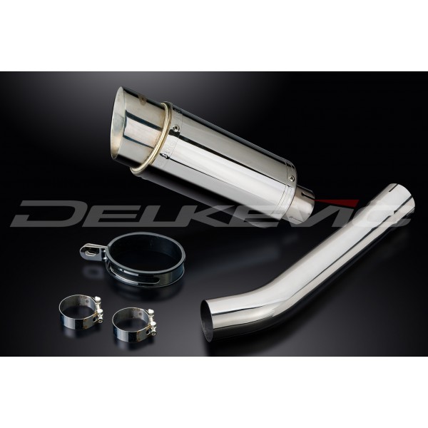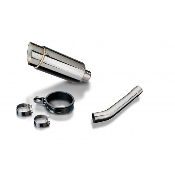• This set includes - Delkevic silencer with a removable baffle, link pipe, strap, and clamps.