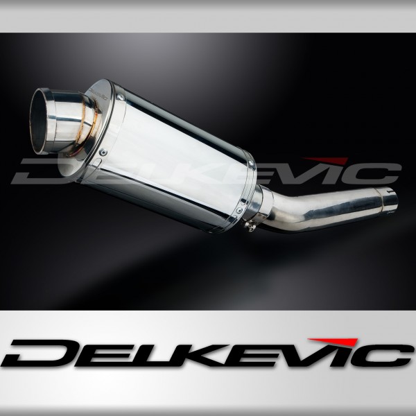 • This set includes - Delkevic silencer with a removable baffle, link pipe, clamps, and strap.