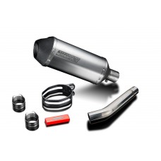 • This set includes - Delkevic silencer with a removable baffle, link pipe, clamps, and strap.