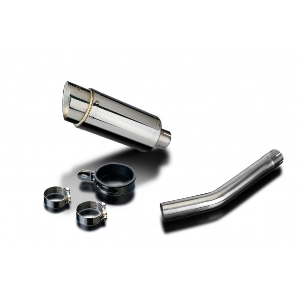 • This set includes - Delkevic silencer with a removable baffle, link pipe, strap, and clamps.