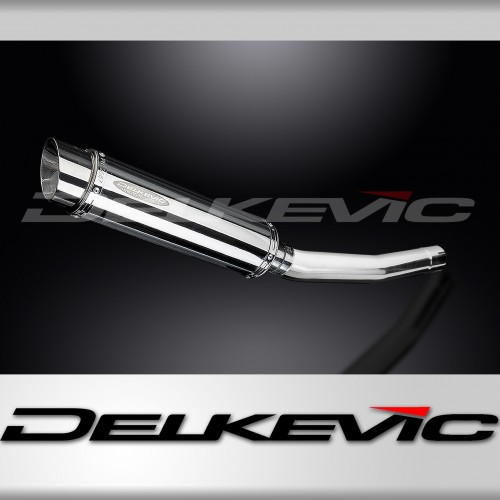 • This set includes - Delkevic silencer with a removable baffle, link pipe, clamps, and strap.