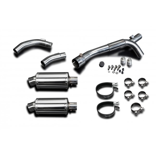 • This set includes - Delkevic silencers with removable baffles, de-cat link pipe, link pipes, straps, clamps, and brackets.