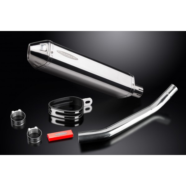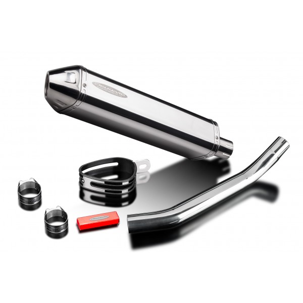 • This set includes - Delkevic silencer with a removable baffle, link pipe, strap, and clamps.